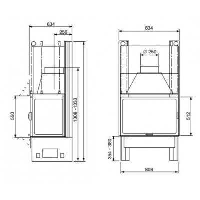 Ширина (мм): 870 Глубина (мм): 593 Мощность (кВт): 11 Вес (кг): 204 Диаметр дымохода (мм): 250 Стекло: Угловое |