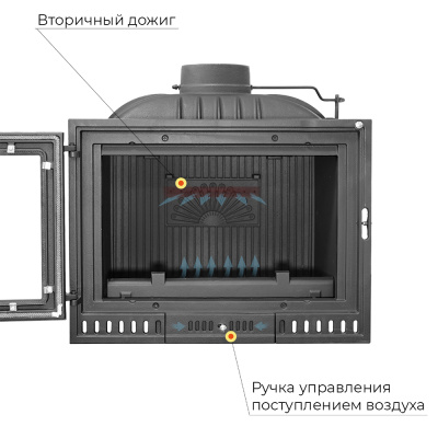 Для производства используется высококачественное литье. Стеклянные дверцы изготавливаются из жаростойкой керамики, выдерживающей высокие температуры. Герметичное закрытие обеспечивает контроль тяги и экономичное сжигание дров.