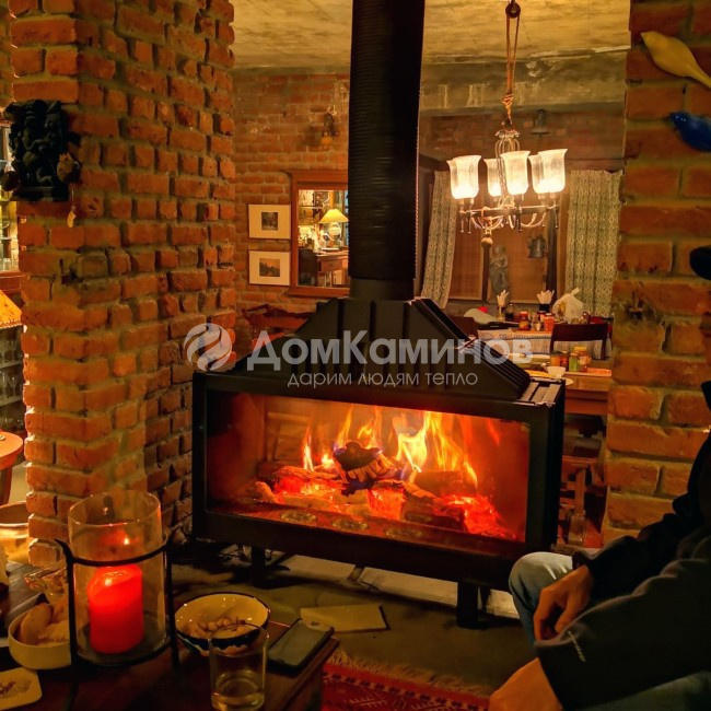 Двусторонняя чугунная каминная топка. Цвет - черный.