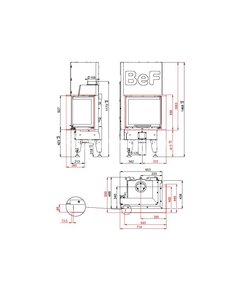 Bef Trend V6 CL - высокотехнологичная топка с вертикальным открыванием дверцы, имеющая Г - образное левое стекло и способна обогреть помещение, площадью 60 . Размер стекла SCHOTT ROBAX®