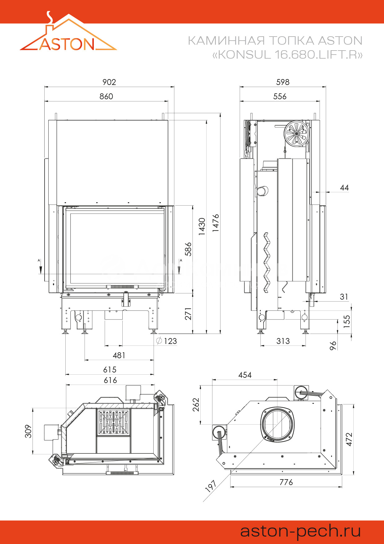Каминная топка ASTON "KONSUL 16.680 LIFT R" диаметр дымохода: 200 мм