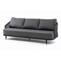 Диван имеет алюминиевый каркас, окрашенный порошковой краской в темно-серый (RAL7024) цвет. Боковины каркаса и спинка вручную оплетены роупом - эластичными синтетическими лентами, изготовленными из высокопрочных полиэфирных волокон. Цвет оплетки в тон каркасу - темно-серый. На ножках дивана идут дубовые наконечники (заглушки).