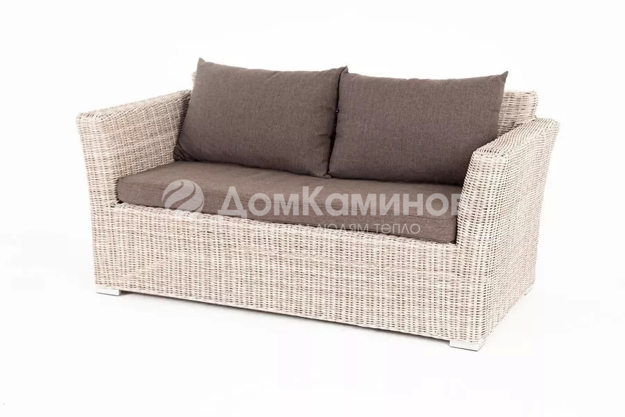 Диван «Капучино» подходит для удобного размещения двух персон. Он имеет алюминиевый каркас, который выдерживает высокие нагрузки. Диван выполнен из искусственного ротанга натурального бежевого цвета с помощью ручного круглого плетения. Укомплектован двухместный диван подушками со съемными чехлами. Они пошиты из прочного полиэстера. Материал обеспечивает защиту текстильным изделиям, которая усиливается за счет влагоотталкивающей пропитки ткани.