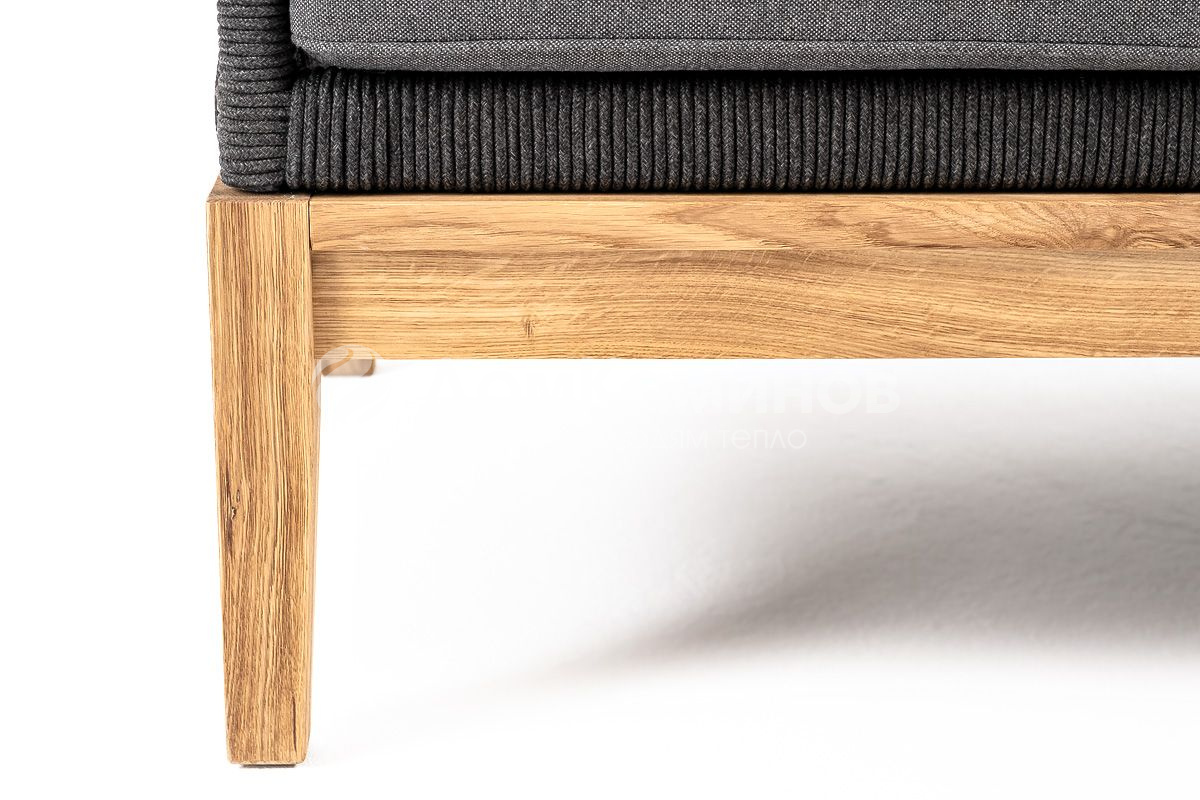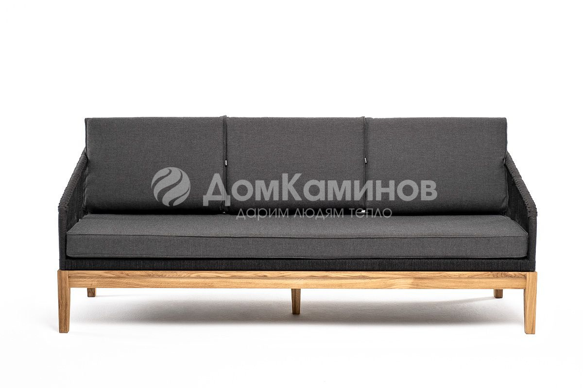 Диван 4SIS Канны 3-местный из роупа, основание дуб, роуп темно-серый круглый, ткань темно-серая 027