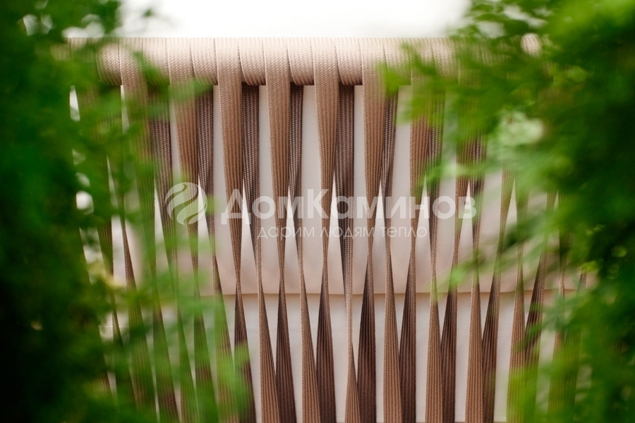 Подлокотники и спинка оплетены вручную эластичными синтетическими лентами из высокопрочных полиэфирных волокон