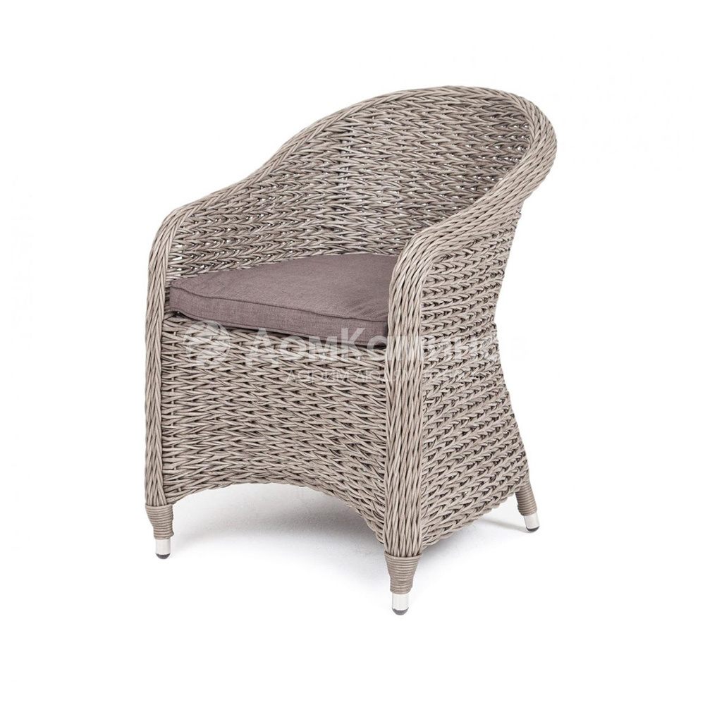 Кресло для сада из искусственного ротанга c плетением вида "гиацинт" из коллекции «Равенна» станет поистине украшением вашего сада, веранды или террасы. Его можно использовать в помещении и на улице.Кресло изготовлено посредством ручного плетения и выполнено из круглого искусственного ротанга графитового цвета. Для укрепления конструкции использован алюминиевый каркас. Благодаря ему плетеное кресло остается легким, но прочным.Оно способно выдержать до 150 кг. Размеры: 680х570х810 мм. В комплект включена серая подушка со съемным чехлом из полиэстера, который обработан влагоотталкивающими пропитками. Чехол можно стирать.