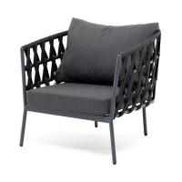 Кресло из роупа 4SIS, каркас темно-серый муар, роуп темно-серый, ткань темно-серая 027