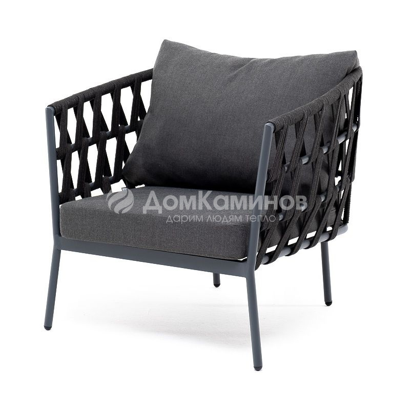 Кресло из роупа 4SIS, каркас темно-серый муар, роуп темно-серый, ткань темно-серая 027 по выгодной цене в Екатеринбурге | Дом Каминов
