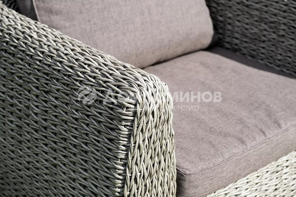 "Кальяри" плетеное кресло, алюминиевый каркас, искусственный ротанг вида "гиацинт", ручное плетение, толщина подушки: 80 мм.