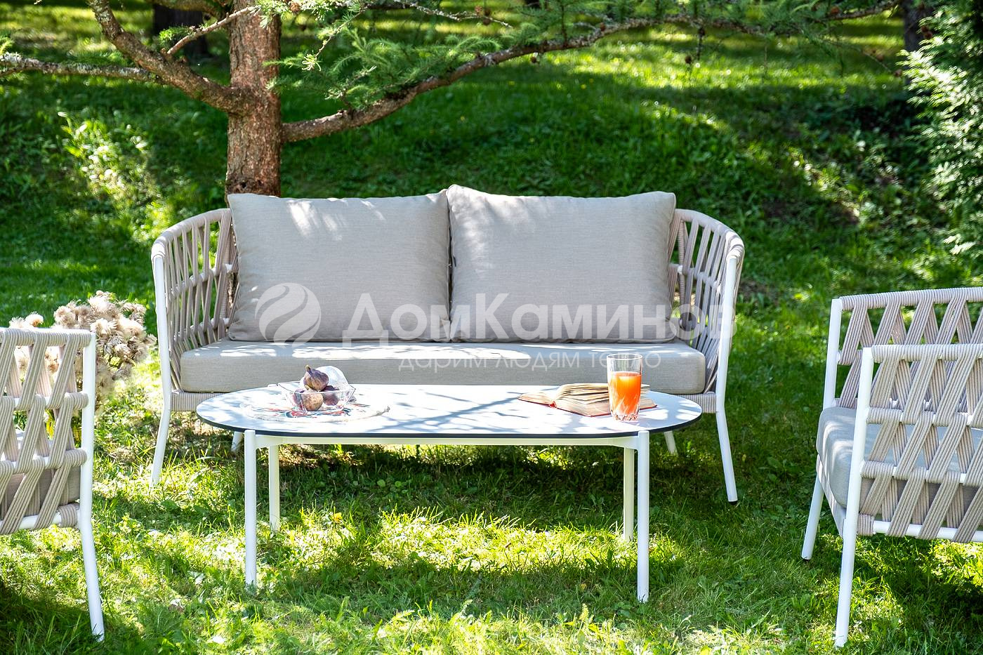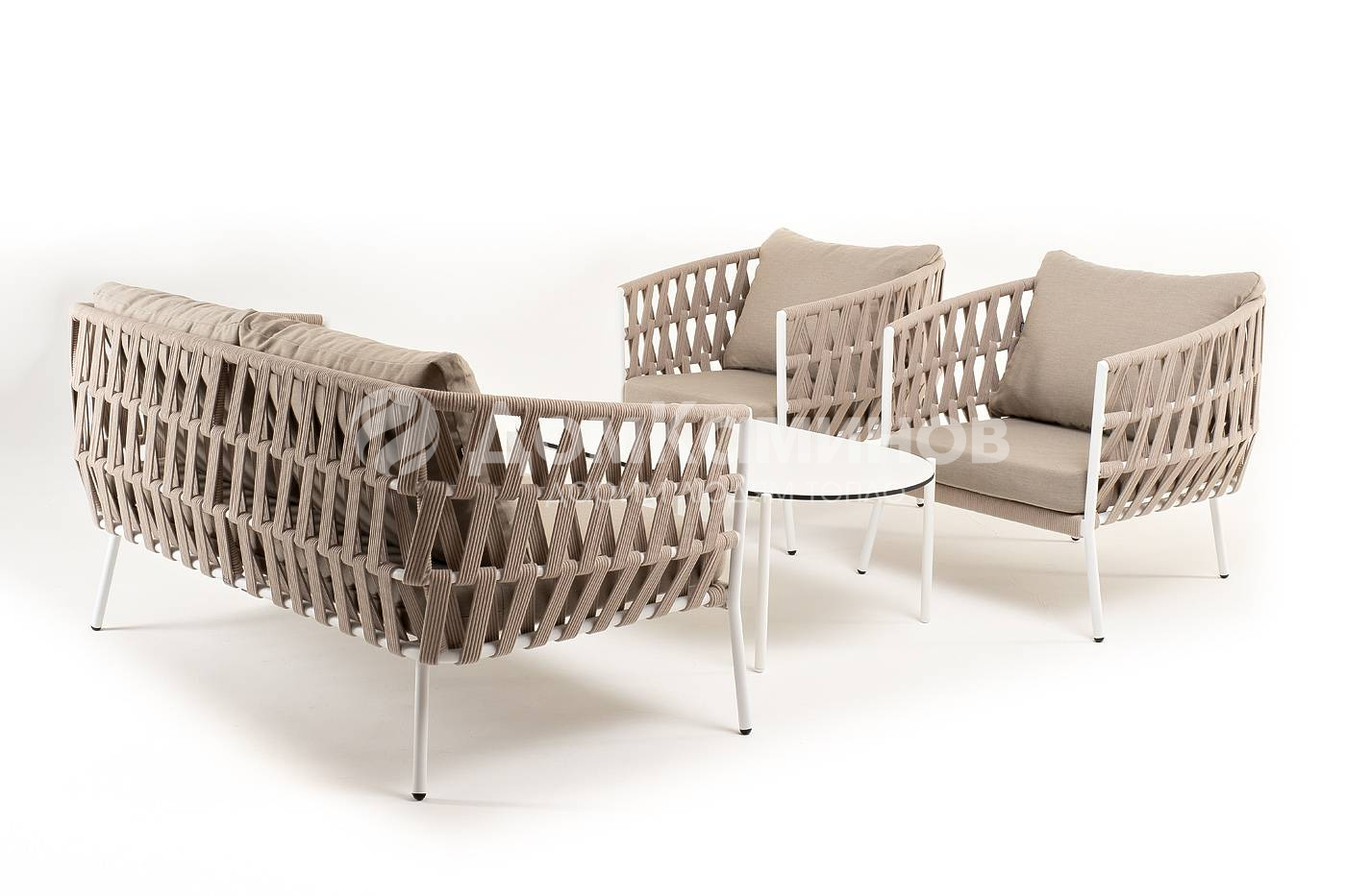 Лаунж-зона 4SIS Диего 4-местная, каркас алюминиевый белый, роуп бежевый