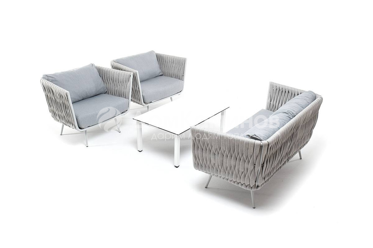 Лаунж-зона 4SIS Монако 4-местная со столом Верона (серый гранит), каркас светло-серый, роуп светло-серый по выгодной цене в Екатеринбурге | Дом Каминов