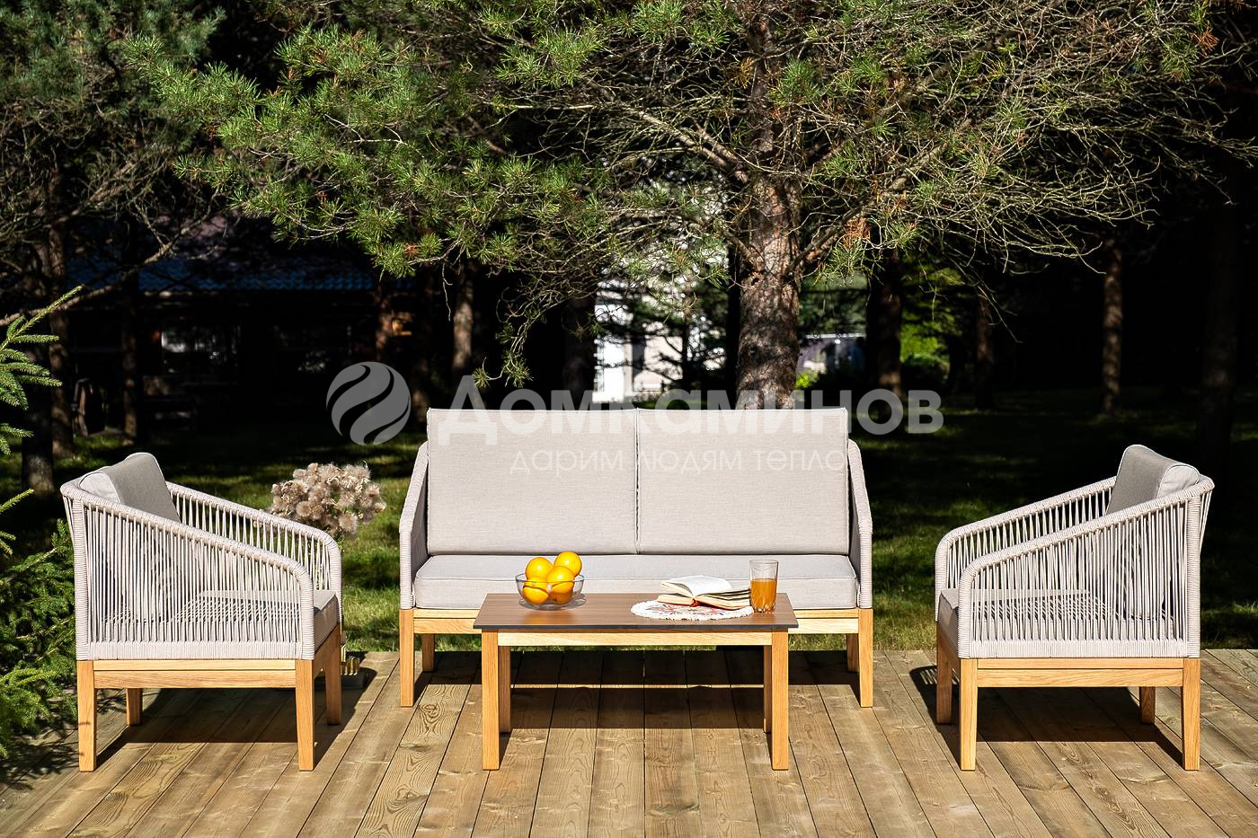 Лаунж-зона 4SIS Канны 4-местная из роупа со столиком Канны Цвет: дуб, бежевый по выгодной цене в Екатеринбурге | Дом Каминов
