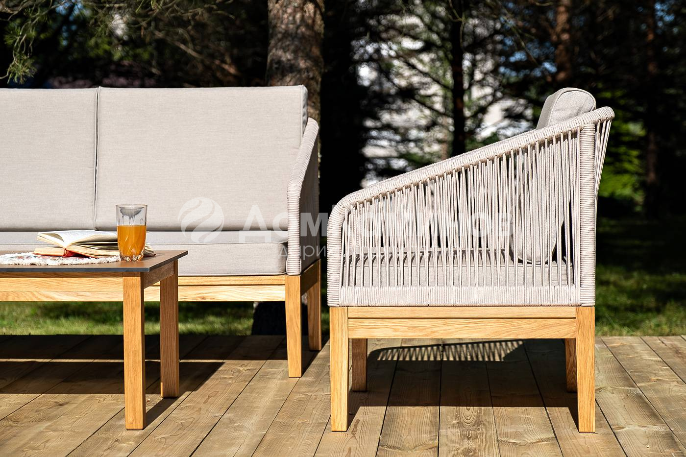 Лаунж-зона 4SIS Канны 4-местная из роупа со столиком Канны Цвет: дуб, бежевый