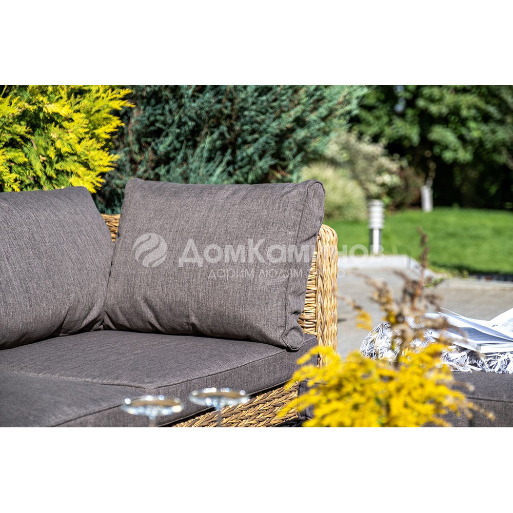 "Лунго" угловой модуль из искусственного ротанга вида "гиацинт", вляется неотъемлемой частью лаунж-зоны. В своем основании имеет каркас из алюминия, который вручную оплетен ротангом соломенного цвета.В комплектации предусмотрены подушки из полиэстера, пропитанные влагоотталкивающим составом.Габариты изделия: 850х850х650 мм