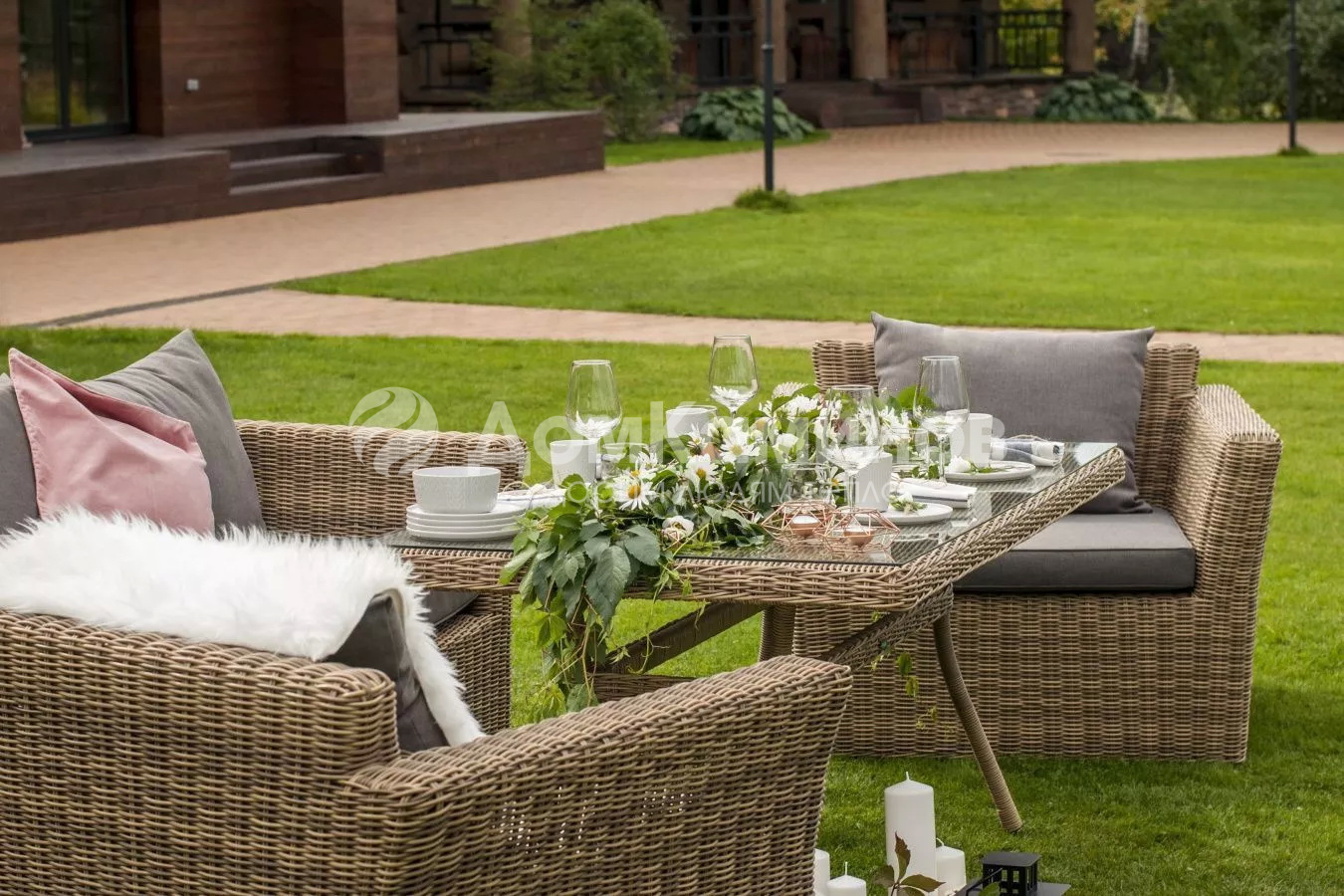 Обеденная группа «Моккачино» позволит оформить обеденную зону даже на открытом пространстве загородного участка.