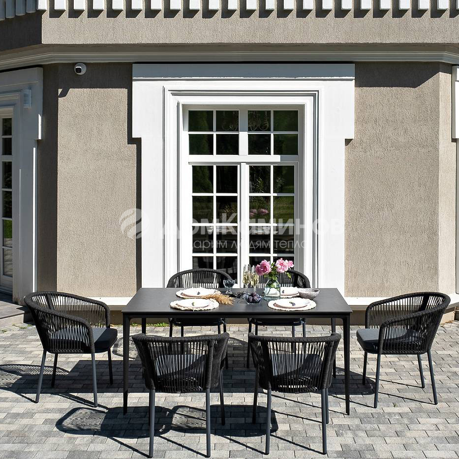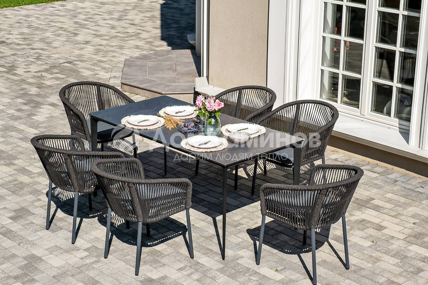 Обеденная группа 4SIS Малага 6-местная со стульями Марсель, каркас темно-серый, роуп темно-серый по выгодной цене в Екатеринбурге | Дом Каминов