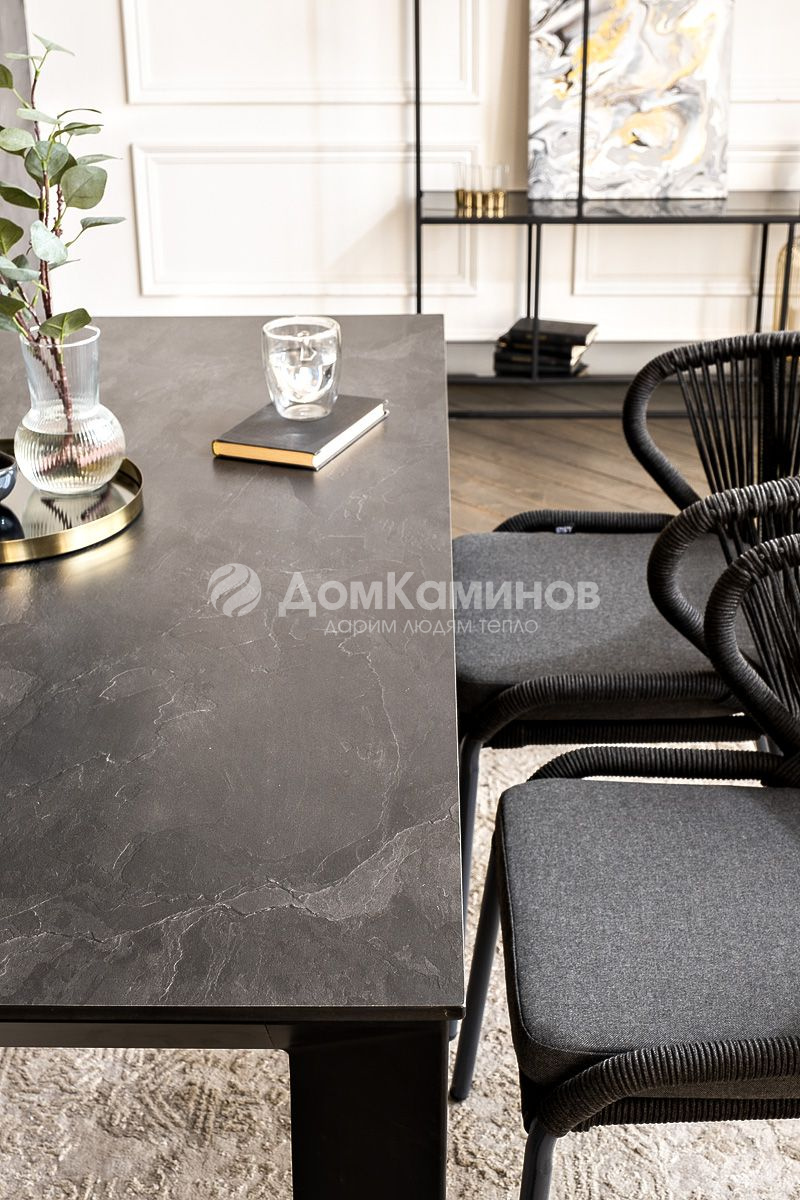 Обеденная группа "Венето" предназначена для комфортного размещения 4 персон и станет отличным дополнением к вашей территории для проведения трапезы с друзьями или семьей.Комплект из стола "Венето" и 4 стульев "Милан" выполнен в едином стиле, комбинируя качественные материалы и современный дизайн.Стол "Венето" оснащен столешницей из надежного HPL-пластика, который обладает высокими показателями стойкости к истиранию, ударам, высоким температурам и влаге, обеспечивая долговечность использования. Габариты столешницы 160х80 см. Цвет столешницы - "серый гранит", что позволяет легко вписать его в любой интерьер. Высота стола 75 см, что соответствует стандарту для обеденной мебели.Стулья "Милан" выполнены из роупа темно-серого цвета, который гармонируют с общим дизайном комплекта. Размер каждого стула составляет 570х620х800 мм. Каркас из алюминия придает стульям легкость и прочность, а порошковое окрашивание защищает металл от коррозии и увеличивает срок службы мебели.