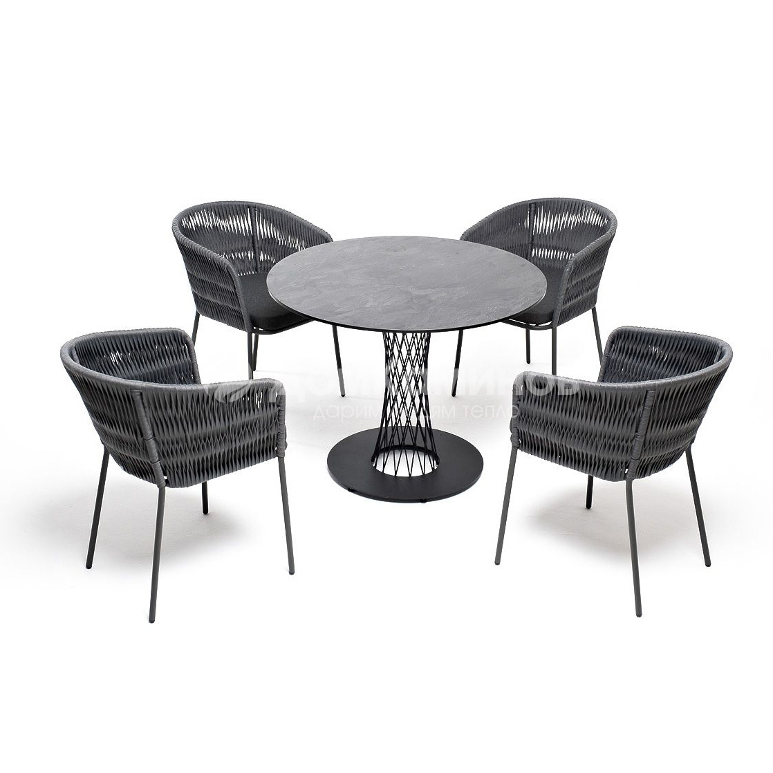 Обеденная группа 4SIS Диего 4-местная из роупа со стульями Бордо Цвет: серый гранит, серый