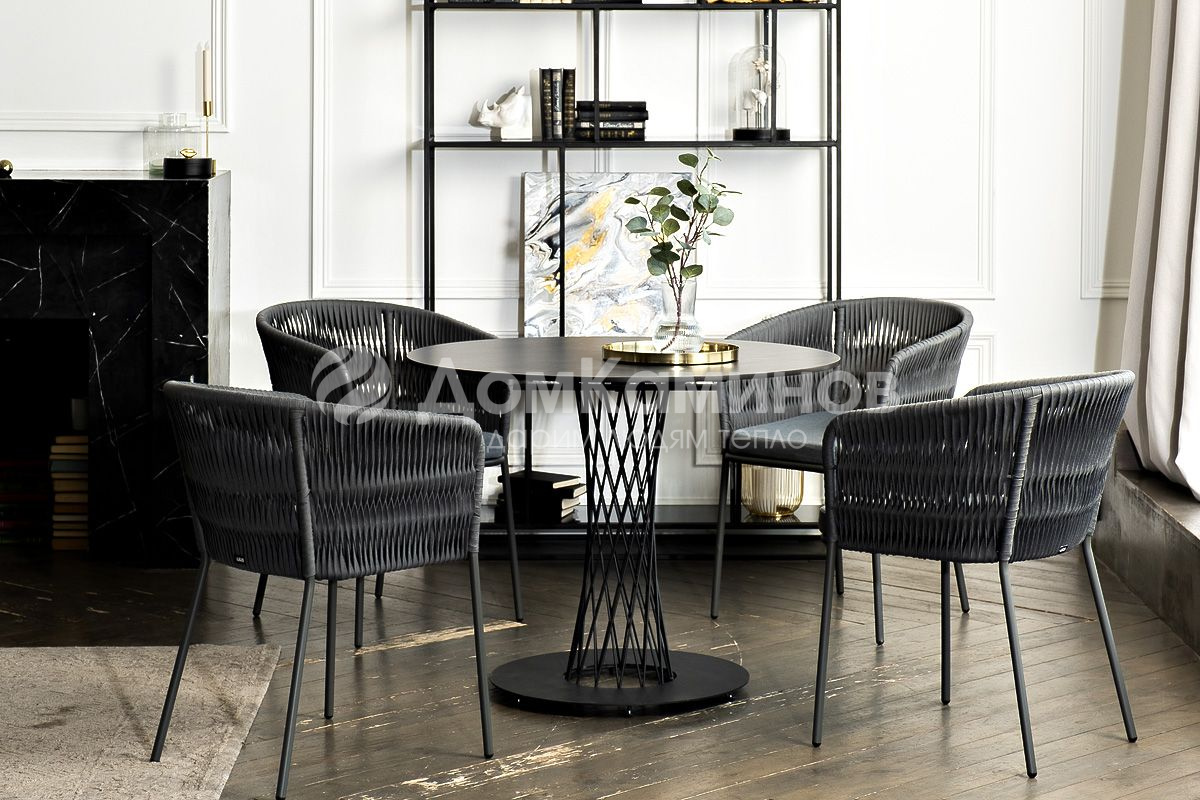 Обеденная группа 4SIS Диего 4-местная из роупа со стульями Бордо Цвет: серый гранит, серый по выгодной цене в Екатеринбурге | Дом Каминов
