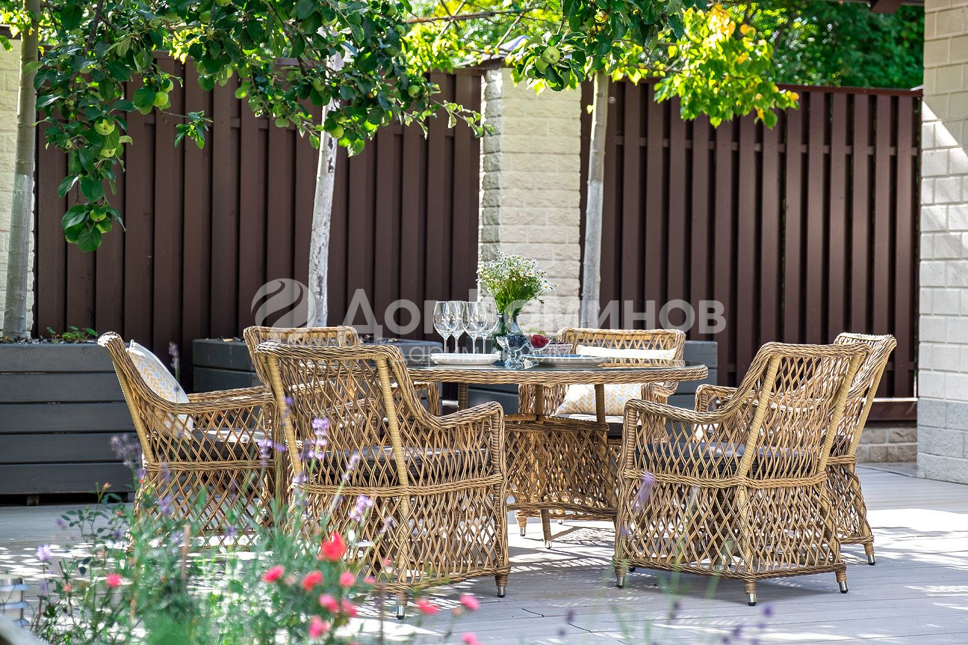 В комплект обеденной группы входит один обеденный стол, шесть стульев и подушки.