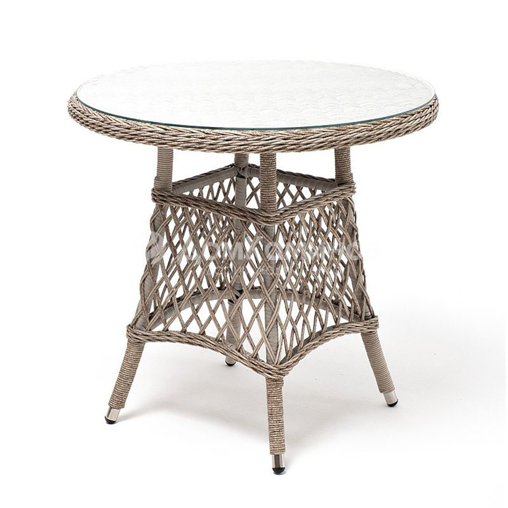 Круглый садовый стол «Эспрессо» из искусственного ротанга.Каркас изготовлен из прочного и очень легкого алюминия. Вручную оплетен синтетическим ротангом натурального соломенного оттенка.Столешница покрыта прочным стеклом, толщиной 5 мм. Благодаря высокопрочным материалам, обеденный стол очень практичный и подходит для всесезонного использования даже на улице.В дополнение к обеденному столу можно приобрести ротанговые кресла серии «Латте» в аналогичном цвете.Диаметр плетеного стола – 800 мм, высота - 750 мм.