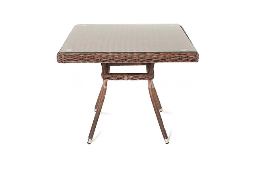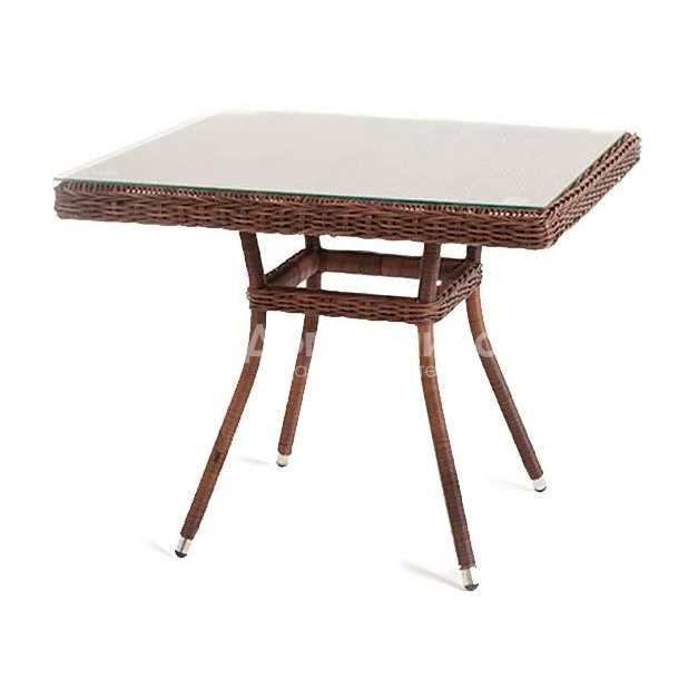 Плетеный квадратный столик «Айриш» изготовлен из легкого, но устойчивого к деформациям алюминия, вручную оплетенного искусственным ротангом насыщенного шоколадного оттенка.На столешнице предусмотрено прочное стекло, толщиной 5 мм, которое крепится к поверхности с помощью вакуумных силиконовых присосок и поставляется в собранном виде.Для создания обеденной группы можно дополнить стол креслами линейки «Латте» или «Равенна» в аналогичном шоколадном цвете.Габариты изделия: 900х900х750.Стол также доступен в натуральном соломенном оттенке.